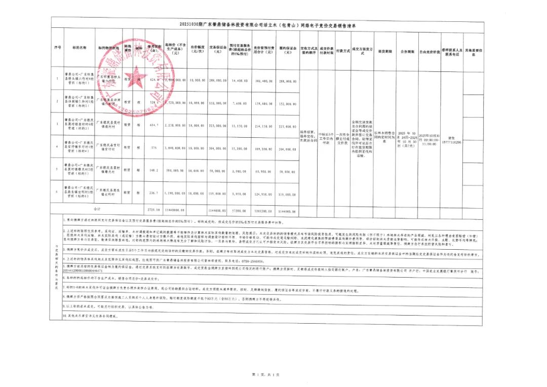 我公司定于2025年10月30日在广西数智林业有限公司林联网交易平台以网络电子竞价交易方式销售以下活立木一批,欢迎有意向者对标的进行实地查勘、竞标。(自由竞价时间为2025年10月30日9:00—11:00),倒计时阶段开始时间为2025年10月30日11:00,倒计时周期3分钟(180秒)。为不影响正常交易,请在竞价开始前交纳交易保证金及交易手续费。详情请关注广西数智林业有限公司林联网交易平台(www.forestryi.com)或微信小程序:林联网发布的活立木交易信息。