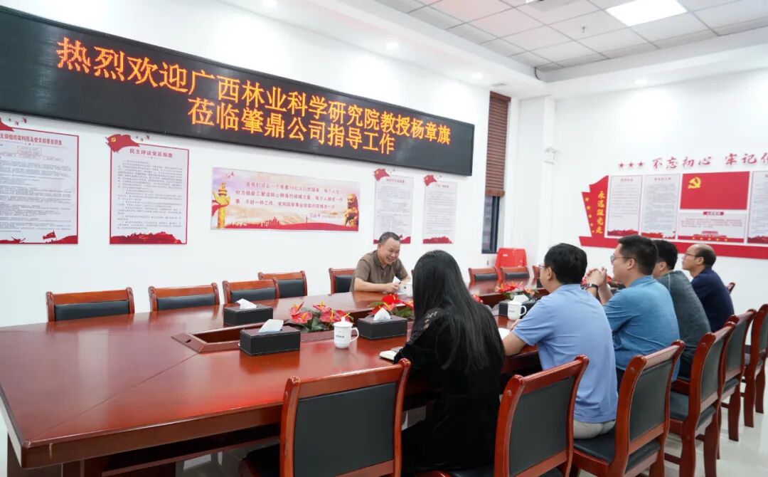 杨章旗教授对肇鼎公司的热情接待表示感谢,并对公司在林业产业发展方面取得的成绩表示肯定。他介绍了广西林科院在森林培养、良种培育、生态工程等领域的科研进展、技术成果及人才优势。他表示,推动科技成果转化、服务林业产业发展是林科院的重要使命,期望通过此次调研,精准对接企业需求,将学院的科研资源与企业的市场优势、实践平台紧密结合,在联合技术攻关、成果示范推广、共建研发平台等方面开展实质性合作,实现优势互补、互利共赢。